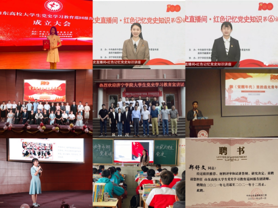 广泛宣传宣讲,推动党史学习教育“热起来”。“没有共产党就没有新中国,共产党辛劳为民族,共产党他一心救中国……”,这是儒商学院郑舒文同学正在为曲阜市中学生作党史宣讲。4月15日,由我校41名学生骨干组成的大学生党史学习教育宣讲团正式成立,郑舒文同学也是其中一员,同时她也成功入选了山东高校大学生党史学习教育巡回报告团。儒商学院作为主要指导单位,充分发挥理论研究社团优势,组织宣讲团开展专题培训、集中研讨、社会实践、主题宣讲等活动,在校园内外掀起党史宣讲热潮。指导老师袁芬说:“宣讲团旨在推动青年成为学党史的主角、讲党史的主力、悟思想的主体。”宣讲团自成立以来,已在校园内外开展宣讲活动39场,先后走进曲阜一中、曲阜实验中学、线上党史直播间和驻曲高校开展宣讲,宣讲覆盖5万多人次,取得了良好的社会效果,相关工作被全国思政网和多家省市级媒体报道。