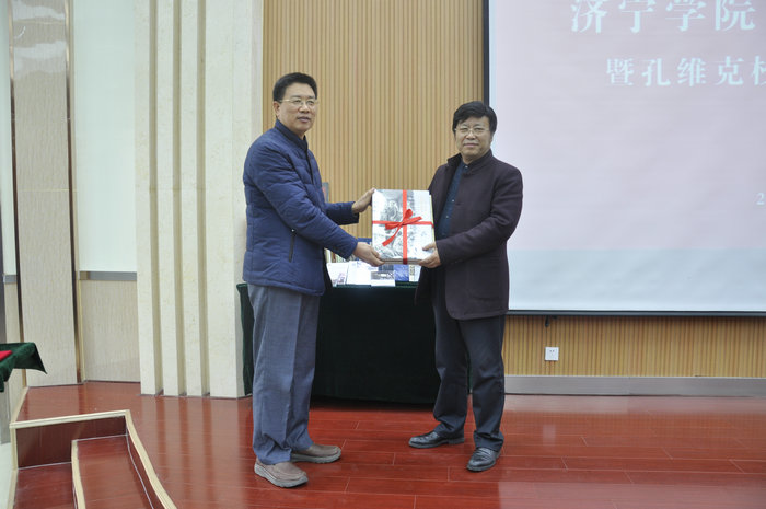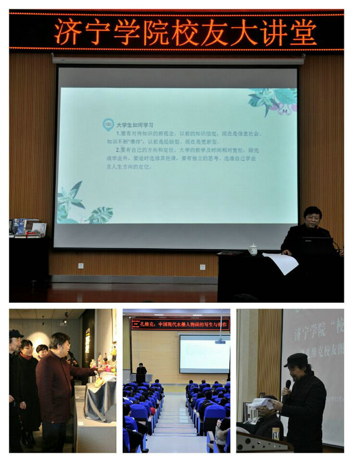 12月14日,济宁学院“校友大讲堂”暨孔维克校友图书捐赠仪式在三号楼智慧教室举行。我校1977级校友、全国政协委员、山东画院院长孔维克,校党委副书记马恩,党委(院长)办公室、宣传部(统战部)、人事处、图书馆、团委的负责同志,以及部分系师生参加了此次活动。活动由美术系主任褚滨主持。