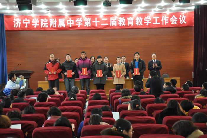 会议第一阶段,副校长郑洪艳作了《高效实干促发展 立德树人谱新篇》的教育教学工作报告。报告从团队建设、教学科研、德育创新、家校一体、办学实绩、提升办学等五个方面对附中一年来的教育教学工作做了全面的总结。副书记姜炳让宣读了表彰决定,对2013年做出突出贡献的中考优胜学科、首席班主任、优秀集备组、优秀课题组、教科研先进个人、“青年教师拜师结对子活动”优秀对子、校本课程先进个人等颁发奖品证书。
