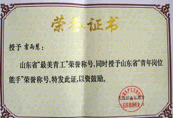 近日,由共青团山东省委组织的“最美青工”评选活动结果揭晓,我校团委推荐的霍雨慧老师在评选活动中脱颖而出,被评为“山东省最美青工”,同时被授予“山东省青年岗位能手”荣誉称号。