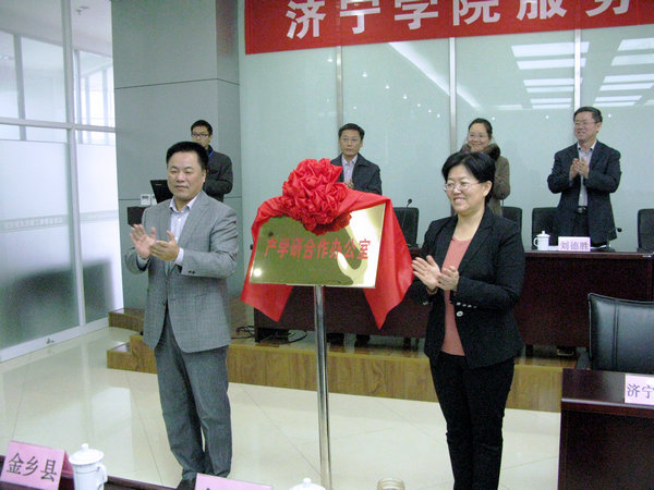 在产学研合作办公室成立仪式上,吕灵昌、贺永红共同签署了“济宁学院山东鲁南工程技术研究院共建产学研合作办公室协议”,并为“济宁学院产学研合作办公室”揭牌。