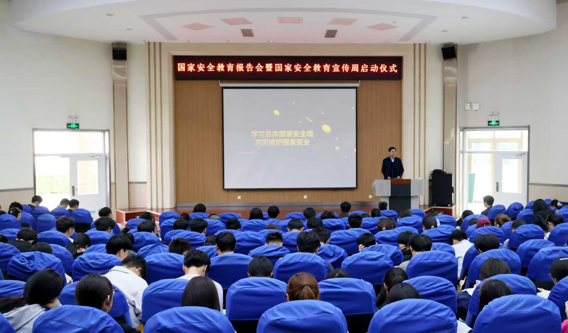 4月15日,我校举行国家安全教育报告会暨全民国家安全教育主题宣传周启动仪式。学校党委委员、副校长赵明出席活动并讲话,宣传部、学生工作处、安全保卫处及团委相关人员,各二级学院辅导员及学生代表共500余人参加活动。