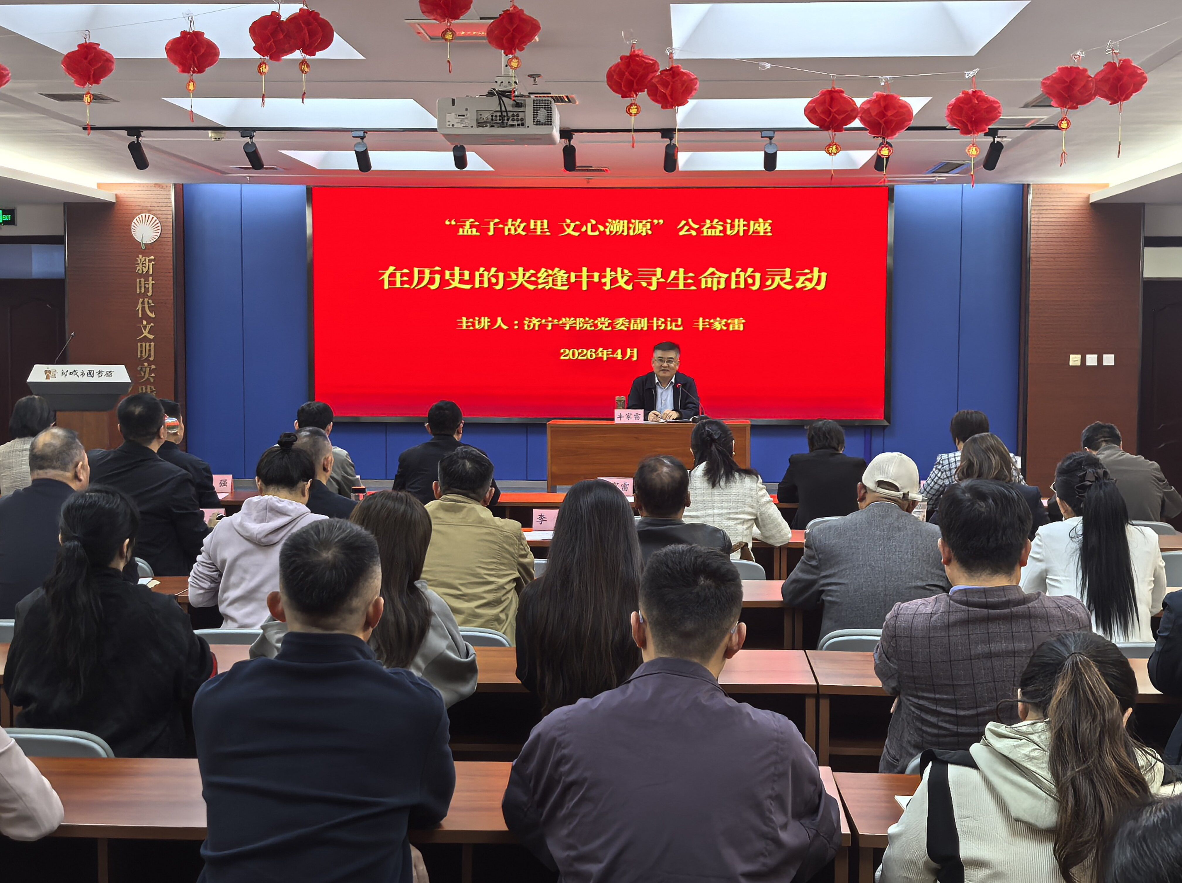 随后,丰家雷以“孟子故里 文心溯源——在历史的夹缝中找寻生命的灵动”为题作公益讲座。他结合自身学习研究与工作实践,旁征博引、深入浅出,通过历史人物与事件的深度解读,生动阐释历史智慧与人生哲理,赢得现场阵阵掌声。