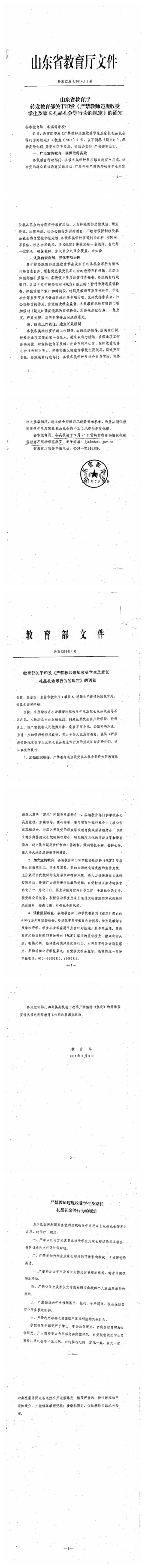 近日,山东省教育厅转发了《教育部关于印发<严禁教师违规收受学生及家长礼品礼金等行为的规定>的通知》(鲁教监发[2014]3号)(以下简称《规定》)。为认真贯彻落实《规定》精神,结合学校实际,现将有关事项通知如下:
