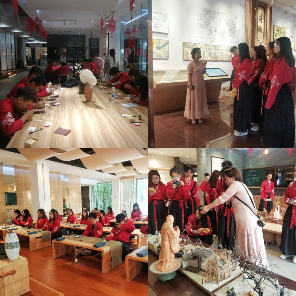 游学活动过程中,学员们穿上汉服,漫步在论语钟亭、辟雍广场,深深感受着孔子研究院家国同构、山水比德、中庸思想、九宫格等规划理念,以方圆为题、崇德尚礼的书院园林式建筑特色;参观了孔子学院总部体验基地的礼门义路、洙泗之上、传礼继世、器以载道、游艺今古等五个体验区,小桥流水、儒风雅乐,借助现代触控媒体和一些体验式的教学教具,浓郁的文化氛围激发了同学们的学习兴趣,体验了篆刻、雕版印刷等传统文化项目,接受优秀传统文化的洗礼;在“大哉孔子”展厅,聆听了孔子的生平、学无常师的好学精神、在教育、学术和治国思想方面的开拓创新精神、孔门弟子及其成就、孔子周游列国的情况以及仁爱、中庸、敬畏天命、大同理想、为政以德、因材施教、孝悌齐家等孔子的博大精深的思想。