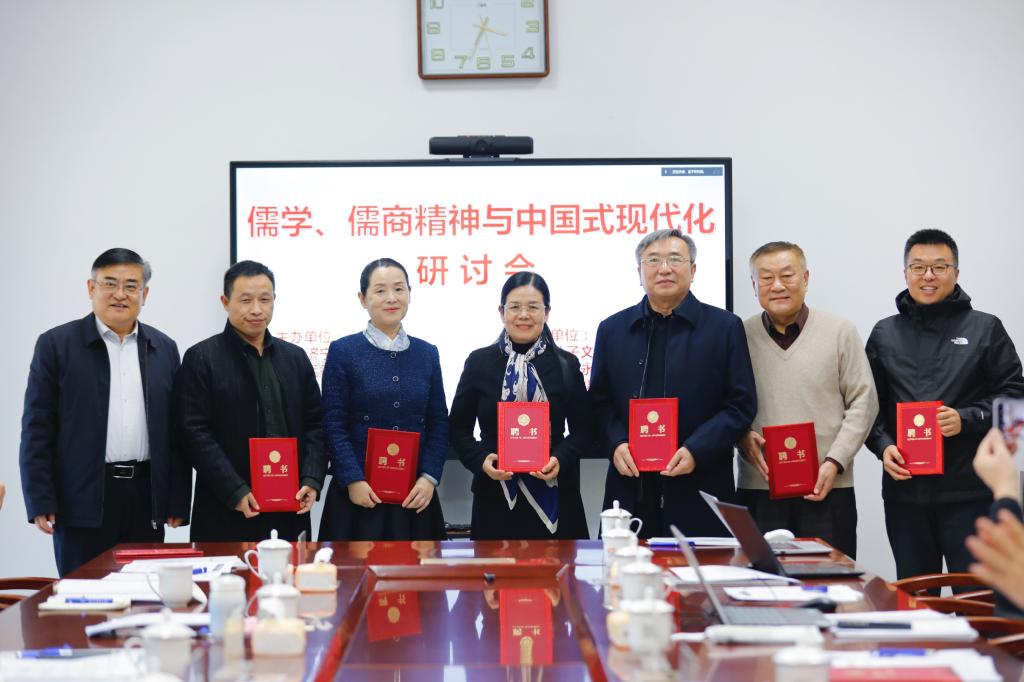 为深入学习贯彻习近平总书记视察济宁重要讲话精神和习近平文化思想,推动中华优秀传统文化创造性转化、创新性发展,11月24日下午,济宁学院、孟子研究院、曲阜文化建设示范区、曲阜市委宣传部、邹城市委宣传部,在孟子研究院共同举办了《儒学、儒商精神与中国式现代化》研讨会。济宁学院党委副书记、课题组组长丰家雷出席研讨会,济宁市十七届人大常委会副主任陈国华主持会议。
