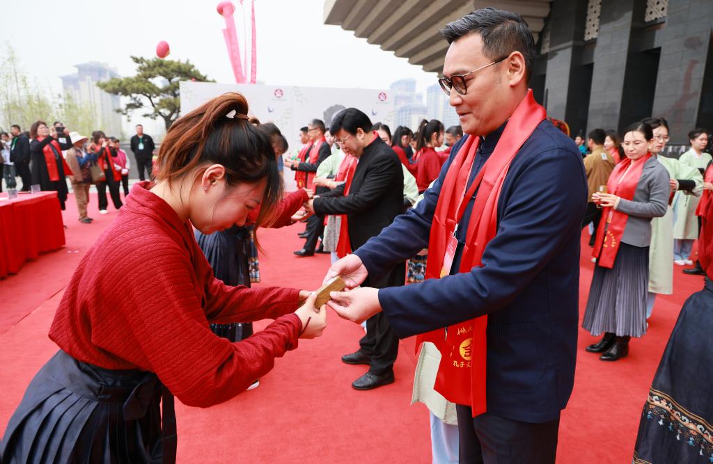 钟鼓相合,磬铉和鸣。4月2日上午,2024海峡两岸孔子文化春会开幕式及崇圣成人礼在孔子博物馆隆重举行,党委书记杨天梅、党委副书记丰家雷出席仪式。孔子第七十九代嫡长孙、至圣孔子基金会会长、济宁学院荣誉校长孔垂长为学校36名学子主礼,学生家长、教师、嘉宾为学生授礼。