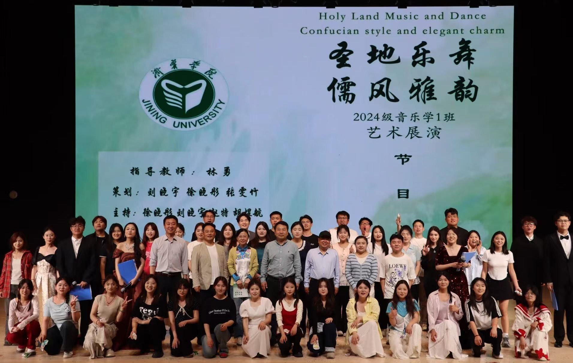 4月17 日下午,音乐学院第五场“圣地乐舞·儒风雅韵”艺术展演在学校艺体中心音乐厅成功举办。音乐学院2024级音乐学1班全体学生为全校师生献上了一场精彩的视听盛宴。从千年古韵的器乐合奏到热血澎湃的时代强音,15 个节目以多元艺术形式展现青年学子的才情与担当,现场掌声雷动,气氛热烈。