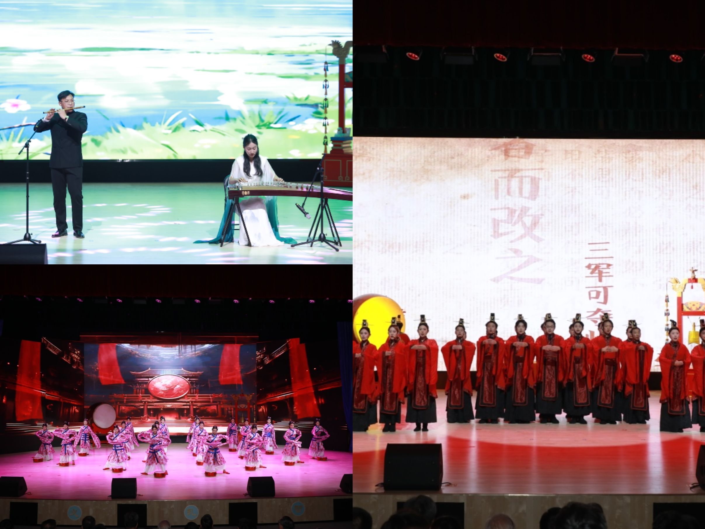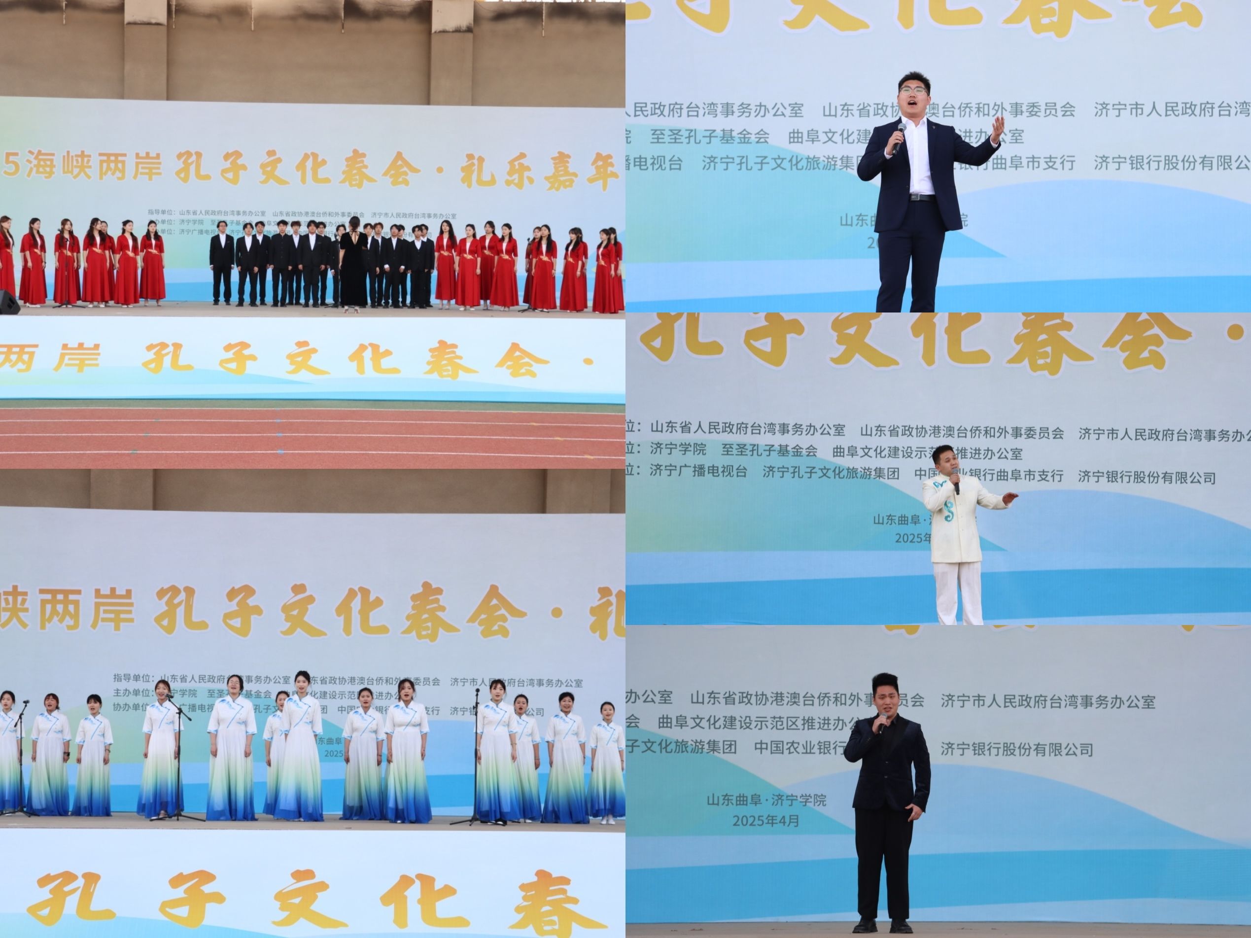 4月1日,由山东省人民政府台湾事务办公室、山东省政协港澳台侨和外事委员会指导,济宁学院、至圣孔子基金会、曲阜文化建设示范区推进办公室联合主办;由济宁广播电视台、济宁孔子文化旅游集团、中国农业银行曲阜市支行、济宁银行股份有限公司协办的“2025海峡两岸孔子文化春会 · 礼乐嘉年华”活动在济宁学院隆重举行。音乐学院师生以精湛的艺术表演和深厚的文化底蕴,为本次活动献上了一场传统与现代交融的视听盛宴,彰显了两岸同胞共同的文化根脉与青春活力。
