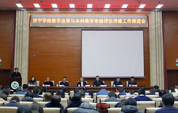 2018年12月12日下午,学校在科技大楼学术报告厅召开了教学改革与本科教学审核评估评建工作推进会。会议以习近平新时代中国特色社会主义思想为指导,贯彻落实全国教育大会和新时代全国高校本科教育工作会议精神,坚持“以评促建、以评促改、以评促管、评建结合、重在建设”的方针,对我校推进审核评估评建工作进行了全面部署。校党委书记郁章玉同志作了题为《以迎接审核评估工作为契机 全面推进新时代我校人才培养高质量发展》的讲话。院长吕灵昌代表学校与职能部门和单位负责人代表签订了责任书。副院长朱松涛作了《准确把握审核评估要求,扎实做好评建工作》专题报告。为顺利推进审核评估评建工作,学校印发了《济宁学院本科教学审核评估评建工作方案》,成立了以党政主要领导为组长、党委其他成员参加的学校评建工作领导小组;设立了评建工作办公室和12个重点项目组,各教学单位成立了评建工作组,下发了《济宁学院本科教学审核评估评建工作任务分工一览表》《本科教学工作审核评估审核项目及要素释义》等材料,制定问题清单、任务清单、责任清单,确保方案的每个阶段都有调度、有指导、有推进,做到把任务下达、项目推进、督促检查和各项工作有机结合,确保把各项评建工作落细、落实,努力推动我校本科教学工作再上新台阶。