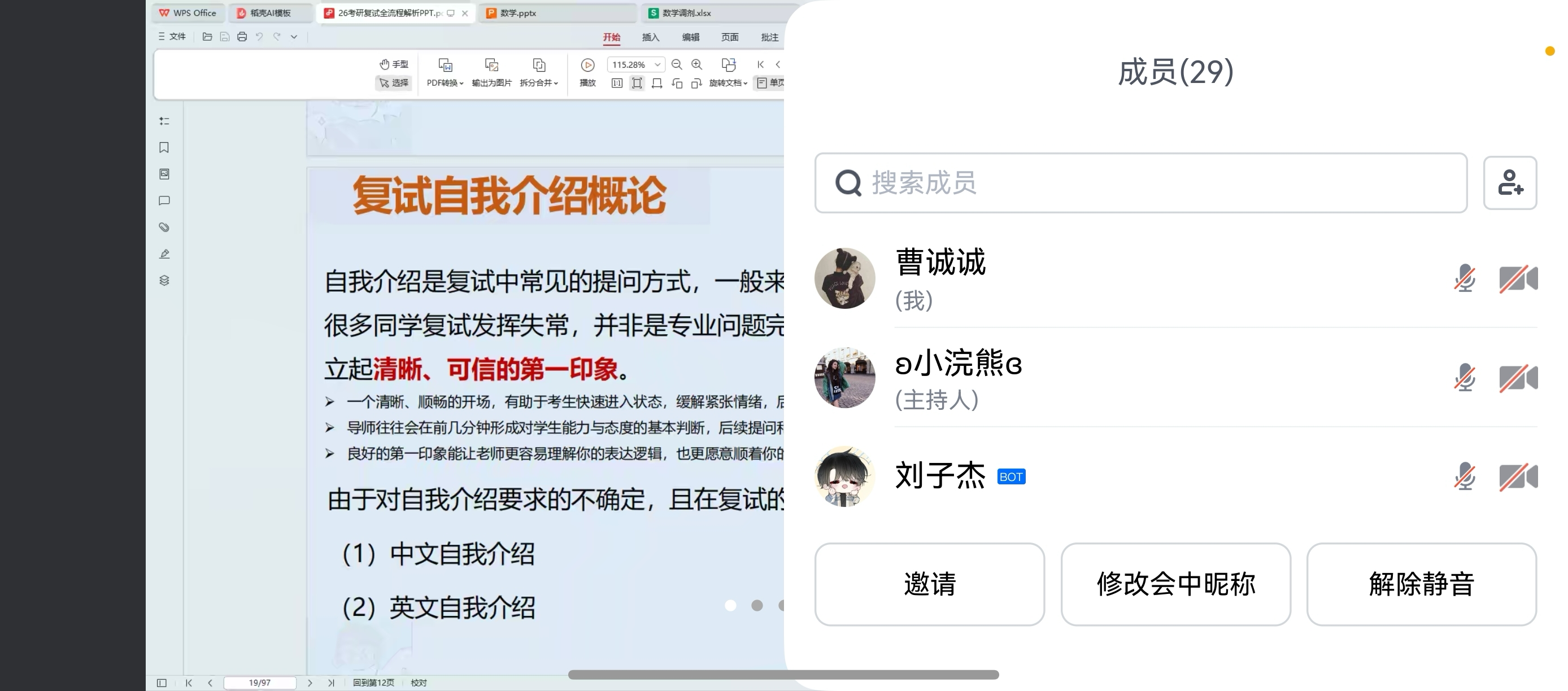 为帮助所有校内外考研毕业生全面掌握复试技巧、熟悉复试流程,3月24日晚,学院特邀校外考研专家,线上开展研究生复试指导讲座。讲座聚焦复试流程、答题技巧、礼仪规范、注意事项等,详细讲解专业问答、综合面试、英语听说等环节的应对方法,现场解答考生线上提问,为考生梳理备考思路、传授实战经验,有效帮助考生提升复试应试能力,缓解考前焦虑情绪。