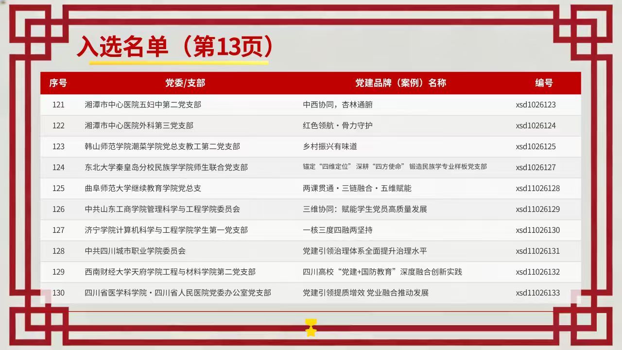 近日,时代国培教育科技研究院公布首届新时代基层优秀党建品牌(案例)遴选活动入选名单(全国170个),计算机科学与工程学院学生第一党支部申报的《一核三度四融两坚持:高校学生党支部育人模式的创新实践》案例在14325个单位报送的20432个党建品牌和案例中脱颖而出,荣获优秀党建案例称号,获得广泛认可。