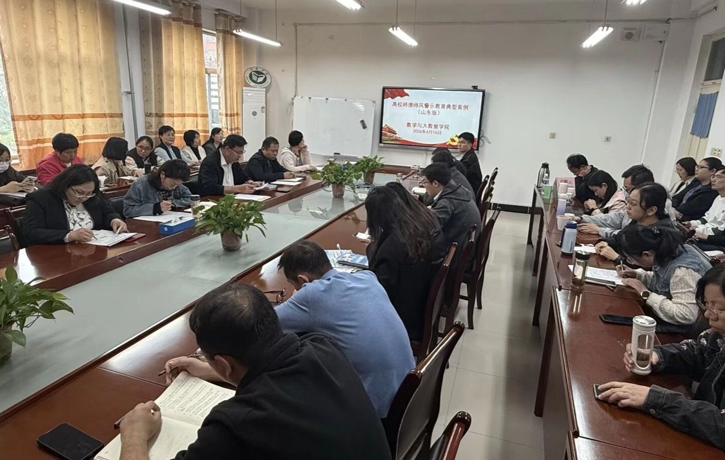 为深入贯彻落实新时代教师队伍建设要求,进一步强化师德师风建设,引导全体教职工严守职业底线、筑牢思想防线,4月16日下午,数学与大数据学院在8A213教室开展师德师风警示教育活动。学院领导班子成员,全体教师参加了活动。