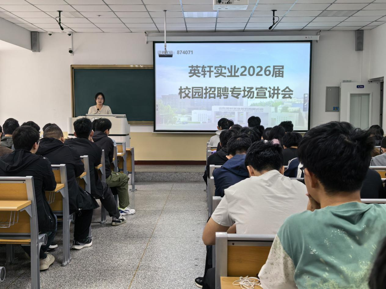 山东英轩实业股份有限公司邢经理通过企业宣传片、PPT演示、宣传手册等多种形式,系统介绍企业发展历程、行业影响力、核心业务布局及未来发展战略,重点解读柠檬酸系列产品研发生产等核心业务板块的人才需求,耐心解答招聘岗位的专业要求与发展前景,着重强调企业对青年人才的重视与培养计划,为学子们答疑解惑、指引方向。宣讲后同学们主动与招聘负责人面对面交流,详细咨询岗位要求、职业晋升路径、薪资待遇、实习安排及企业发展前景等核心问题,展现出扎实的专业素养、积极的求职心态与良好的精神风貌。
