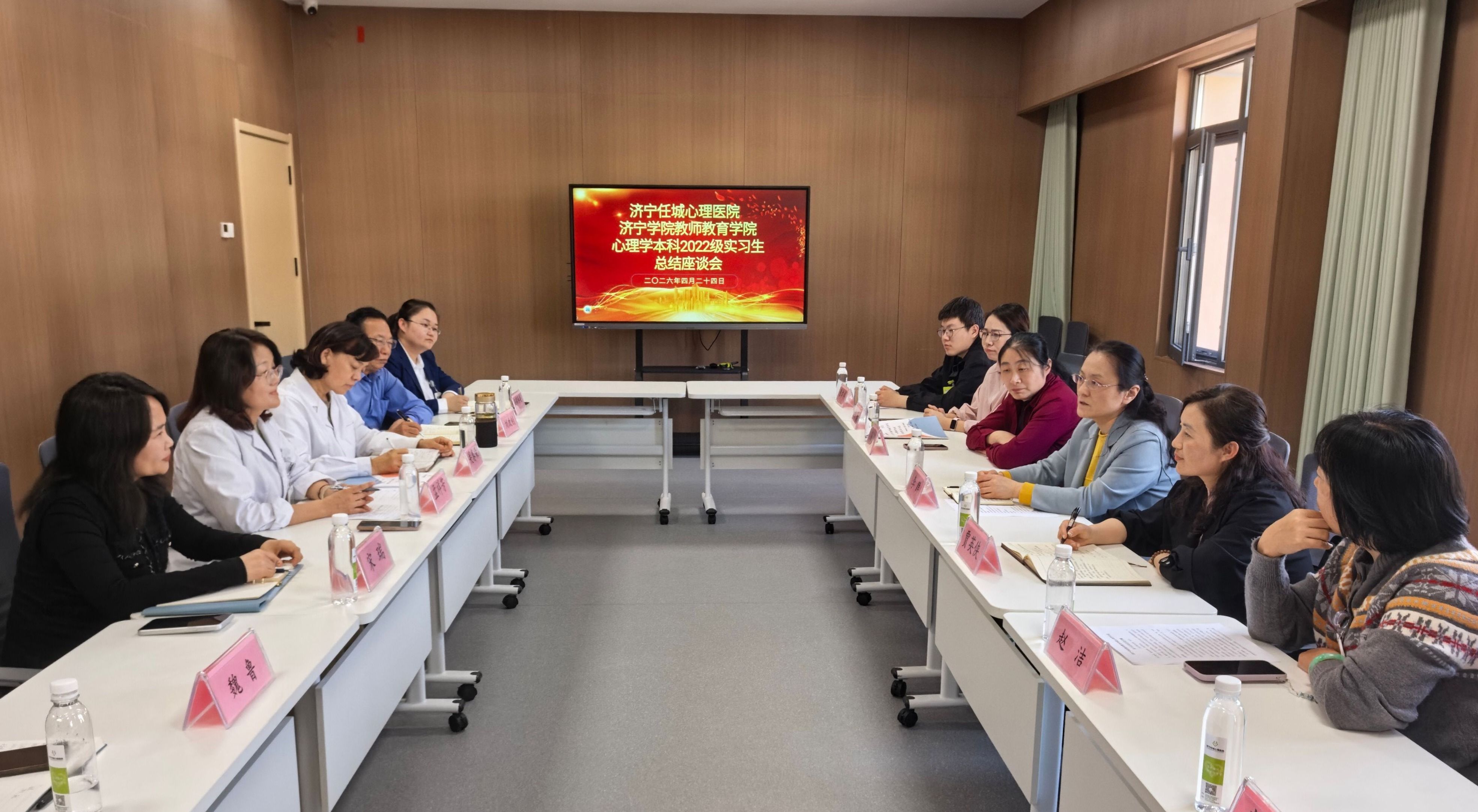 4月24日,教师教育学院心理学专业学生在济宁任城心理医院的实习工作圆满结束。为总结实习成果、深化校院合作,双方在济宁任城心理医院召开实习总结座谈会。教师教育学院院长李群、副院长贾英侠、心理系主任孙静、教研室主任侯蕾、指导教师赵洁教授及全体实习学生参会。济宁任城心理医院副院长孟祥芳、关春荣、宋瑞及带教老师孙周春美等共同出席。