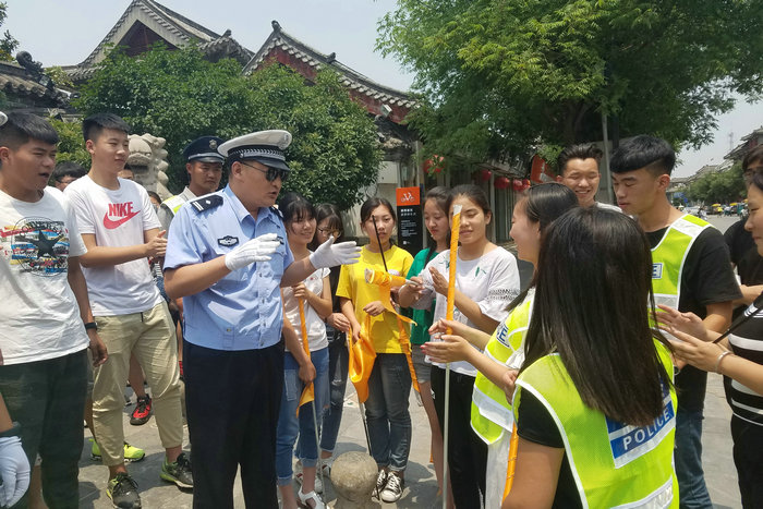 6月12日下午,初等教育学院(曲阜师范校区)举行了“交通安全志愿者服务”启动仪式,曲阜市公安局交警大队负责人、校区党委书记朱宁波及55名学生交通志愿者参加。