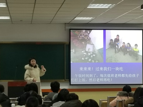 闫彩霞传达了本次实习支教工作的方案要点和规章要求,吴瑞民、刘春雷、张玉姗三位指导老师代表从教学方法、安全意识、心理调节、角色转变等多个角度鼓励支教学生从环境上、心理上、工作上尽快适应支教生活。五位2018年秋季实习支教的优秀学生代表用丰富的图片、幽默的语言,从不同侧面介绍了他们的支教生活,并和同学们分享了他们实习支教的经验、教训,以及收获和感悟。辅导员齐斌结合历届支教实例,就实习支教中要注意的六项纪律做了重点强调,叮嘱大家支教期间务必要牢记“安全第一”的原则,务必处理好和实习学校师生的关系,顺利完成支教任务。