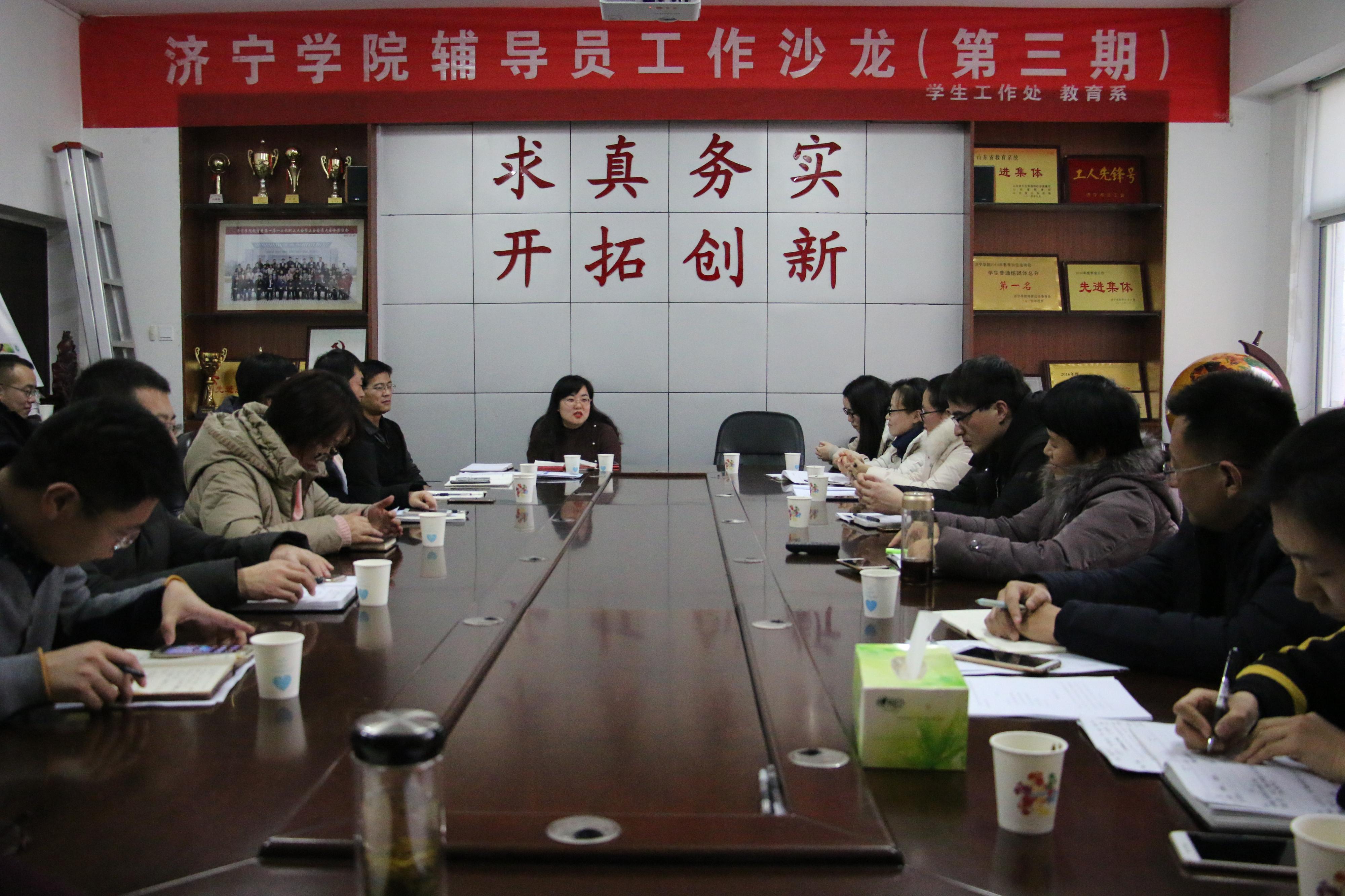 1月7日下午,由学生工作处主办、教育系承办的济宁学院第三期辅导员工作沙龙在2号楼A211举行。学生工作处处长夏可树、教育系党总支书记乔东华、学生工作处副处长孙婷婷、各系党总支副书记及全体辅导员参加了活动。活动由教育系党总支副书记刘勇主持。