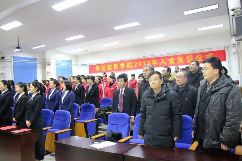 2019年1月10日下午,学前教育学院学术报告厅,党旗鲜艳,气氛庄重,誓言铮铮,入党宣誓仪式在这里隆重举行。