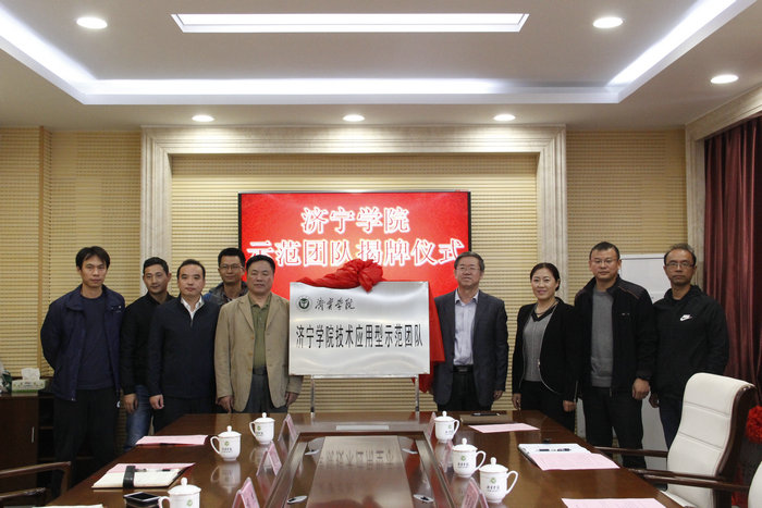 刘德胜宣布济宁学院科研型示范团队、技术应用型示范团队成立并致辞。他指出,学校成立科研型示范团队和应用技术型示范团队,是我校科研长足发展的必然趋势和必由之路,是学校深入实施人才强校战略,落实各项人才政策,提升服务社会能力的体现,必将对我校学科融合与创新,培养高水平人才,促进我校与国内外大学、企业的交流与合作,提高学校的学术声誉与影响力,对我校科技创新体系的构建起到积极推动作用。刘德胜就如何做好团队建设提了五点要求:一是示范团队建设要围绕学校学科发展战略目标、学科规划和经济社会的需要,明确研究方向和发展目标;二是团队负责人要具有战略眼光和很强的协调能力,使整个团队和谐地运行、快速地发展;三是要构建适度的人员规模、合理的队伍结构,形成团结协作的机制和追求创新的氛围,力避单打独斗;四是要建立科学合理的考核、评价、激励政策,奖惩分明;五是作为科研组织模式改革的重要探索,要提倡构建多元化的团队组织模式,提倡多学科交叉融合,采取多种灵活方式建设团队,希望示范团队发挥科技领头雁的作用,促进高水平成果产出,提升学科水平,推动学校转型发展。